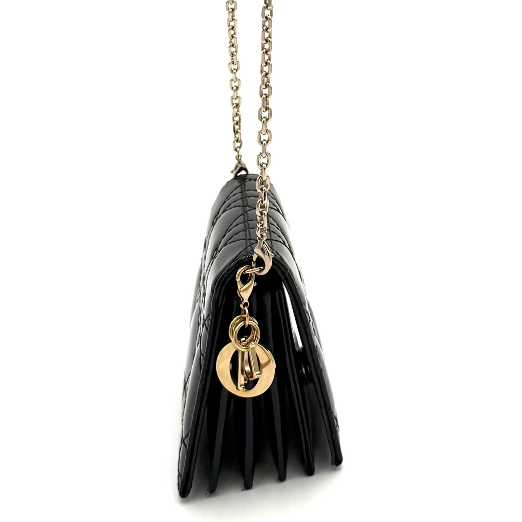Made from glossy patent leather with Dior’s iconic Cannage quilt, this card holder comes with an optional chain strap and opens to an accordion interior with a trio of compartments that's great for organization.