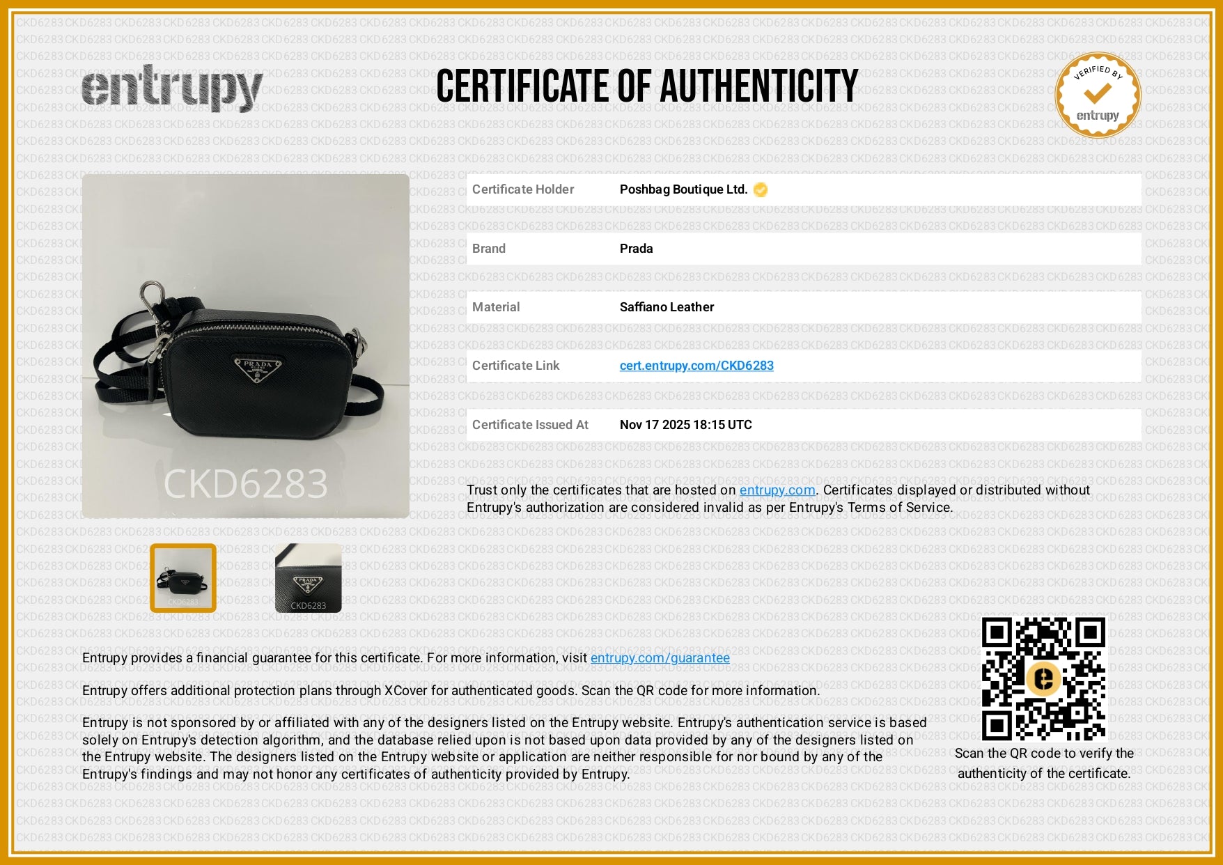 A scaled-down, palm-sized pouch made from Prada's signature Saffiano leather, a material known for its durability and crosshatch texture. The nylon strap is removable, letting you carry the style as a chic clutch.