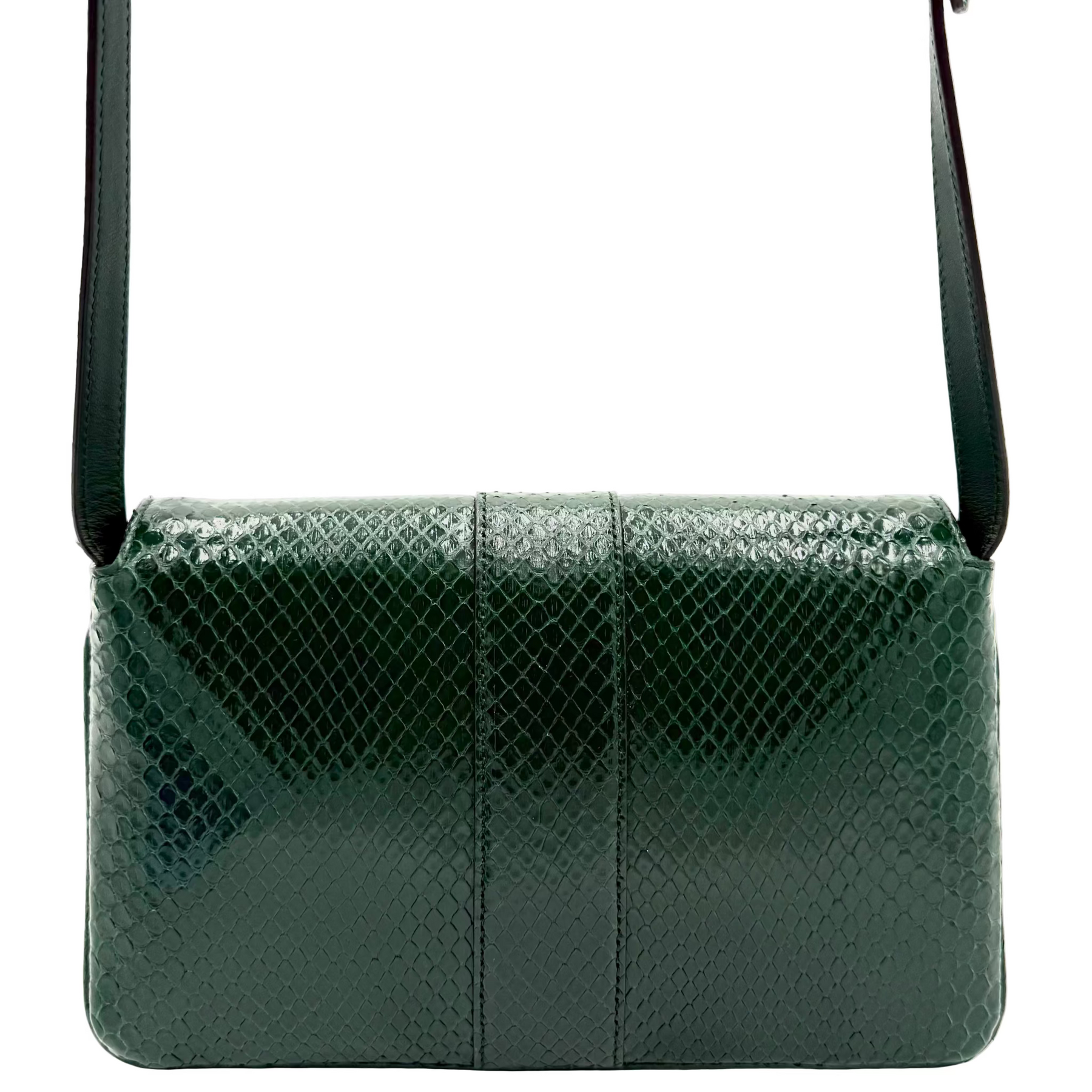 Exotic elegance meets timeless Italian design in this stunning Gucci shoulder bag, crafted from luxurious emerald green python leather. The richly textured finish highlights the natural beauty of the skin, while the vivid green hue offers a bold, statement-making pop of color.