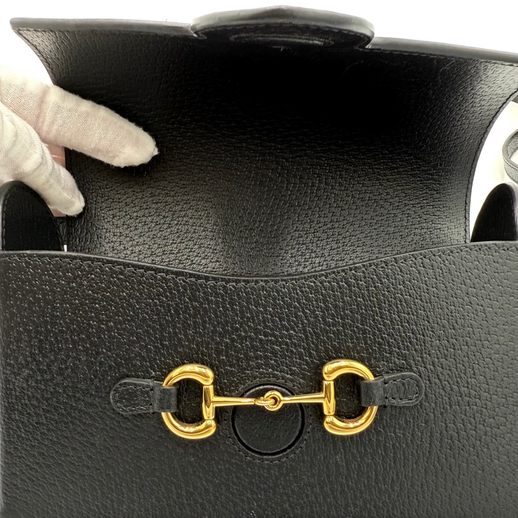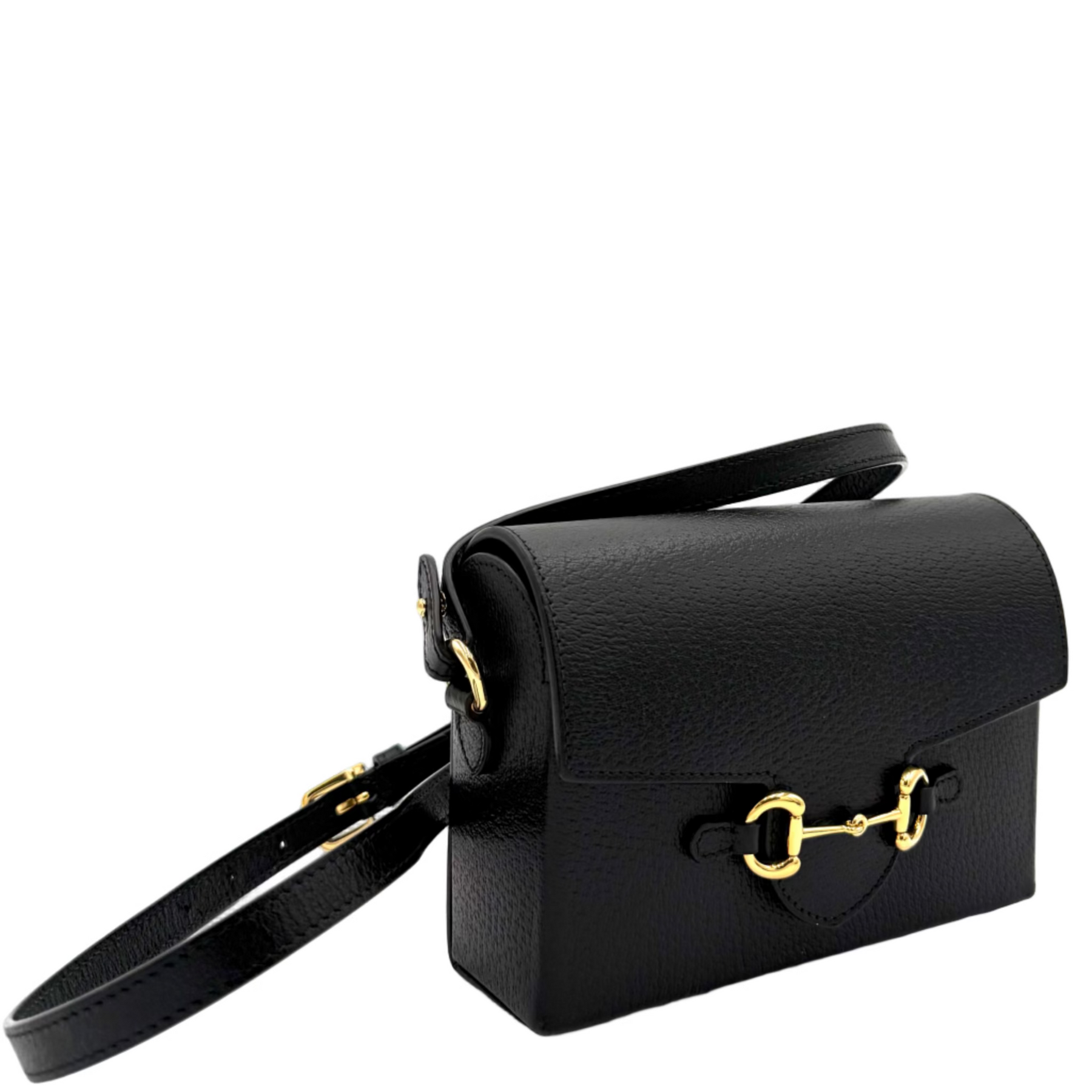 A modern take on an archival icon, the Horsebit 1955 Convertible Bag by Gucci blends heritage details with versatile functionality. Crafted from rich black textured leather, this compact yet refined piece is adorned with the signature Horsebit hardware—a symbol rooted deeply in the brand's equestrian legacy.