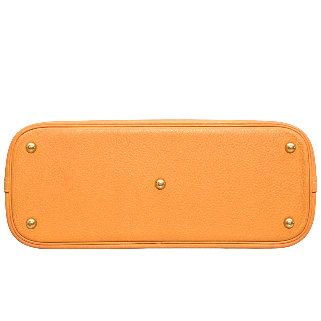The gold-tone hardware complements the warm leather tones, and the contrast stitching highlights Hermès’ signature attention to detail. The top zipper closure and rolled leather handles ensure both security and comfort, while the spacious interior provides practical organization for all your essentials.
