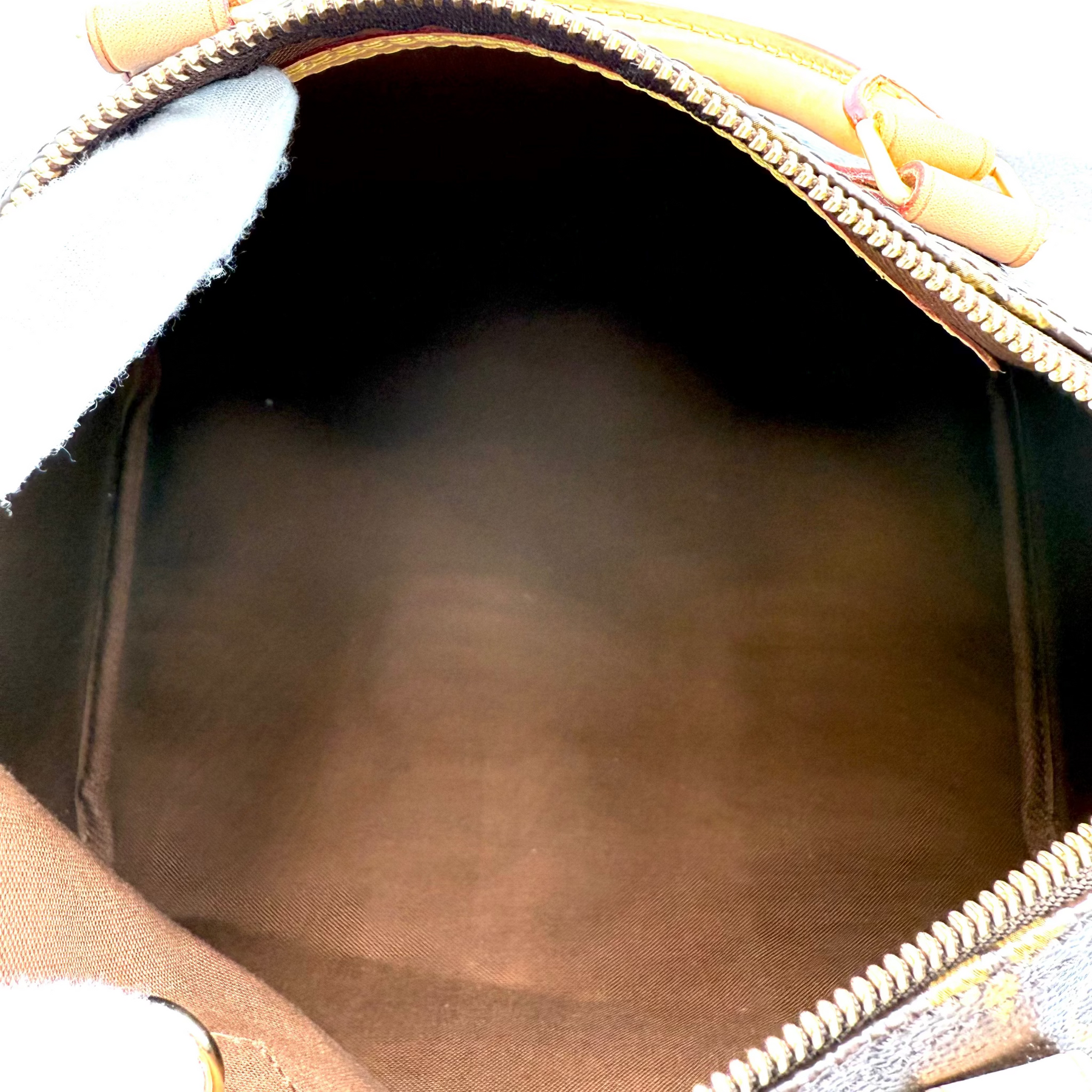First debuted in the '30s, the Louis Vuitton Speedy has enjoyed lasting popularity thanks to a distinct silhouette reimagined time and again in many different canvases and leathers. This particular style is made from monogrammed canvas with natural cowhide leather trim and golden hardware.