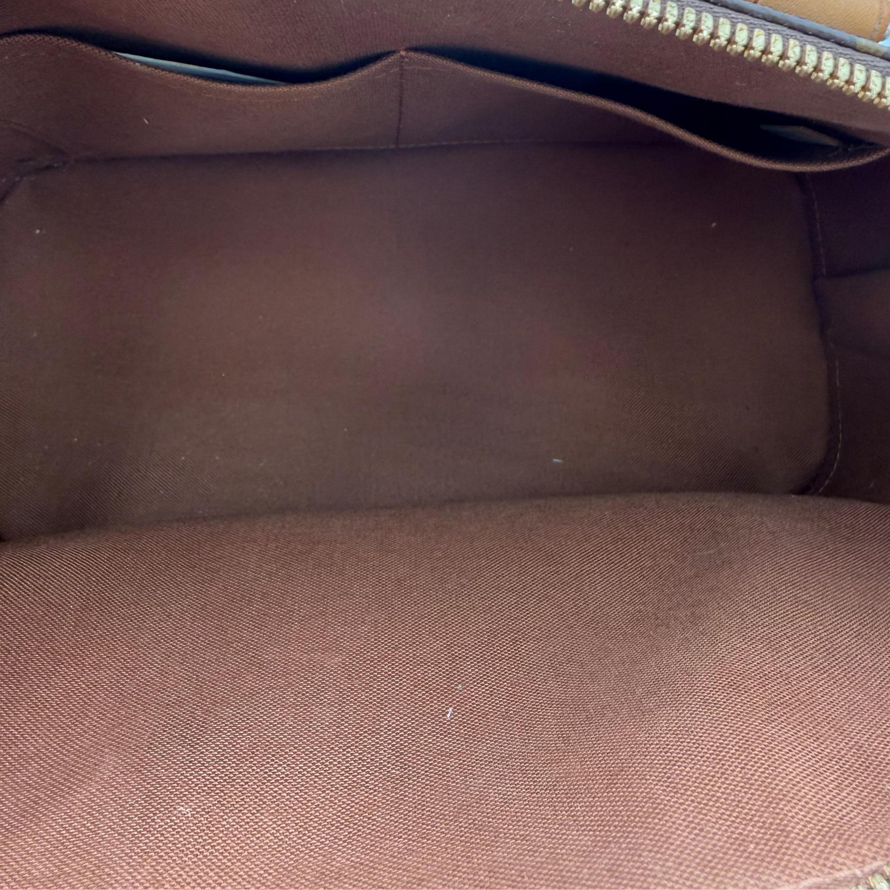 Overall: Some staining and patina on the vachetta - particularly on the bottom of the base. Interior is in great condition - no marks. Vachetta handles are clean, just slight water spots and a few marks on the base vachetta.