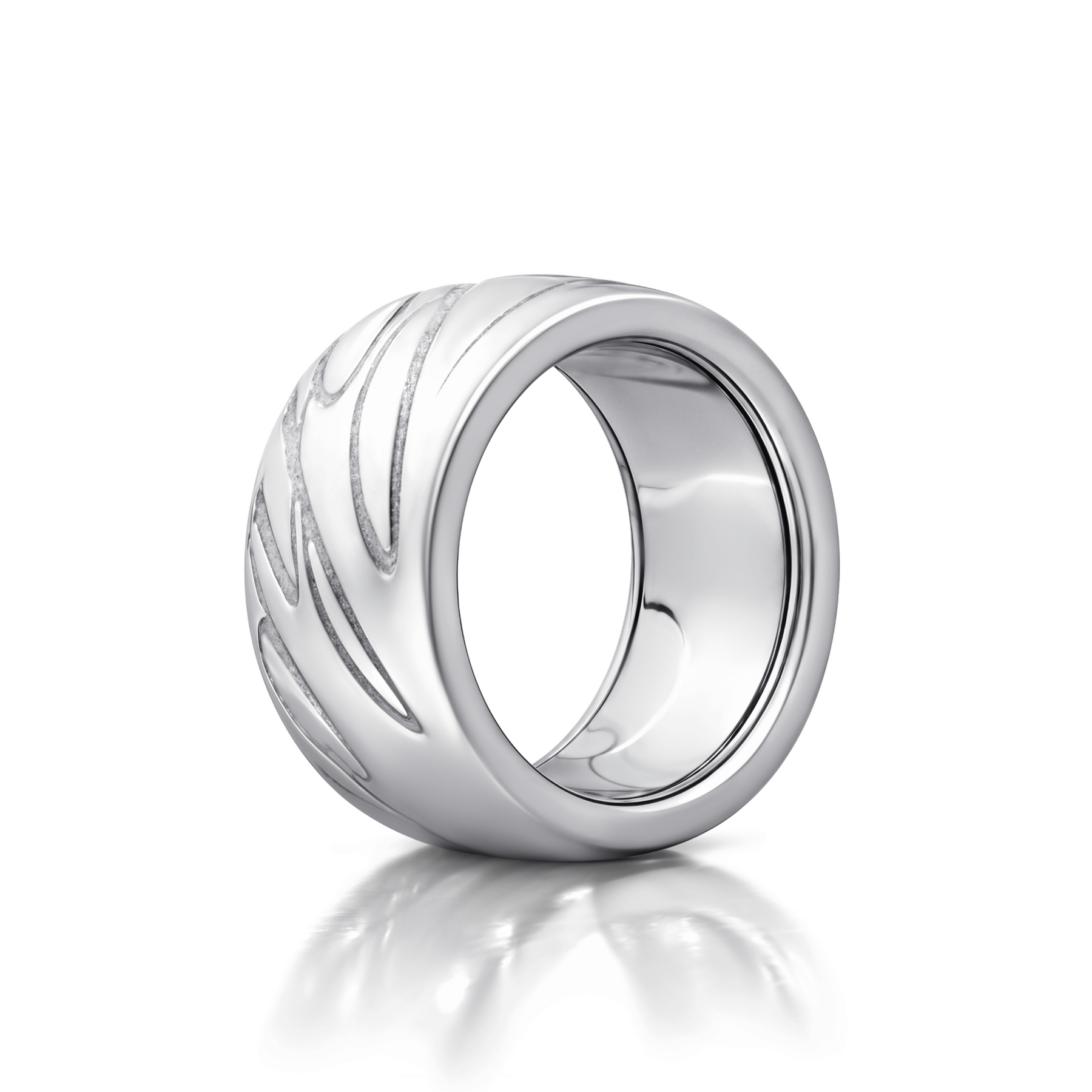 A bold expression of modern elegance, the Chopardissimo Spinning Band by Chopard showcases the Maison’s signature blend of innovation and timeless design. Expertly crafted in luminous 18kt white gold, this distinctive wide band features a unique rotating construction, with interlocking elements that move fluidly for a dynamic and comfortable fit.