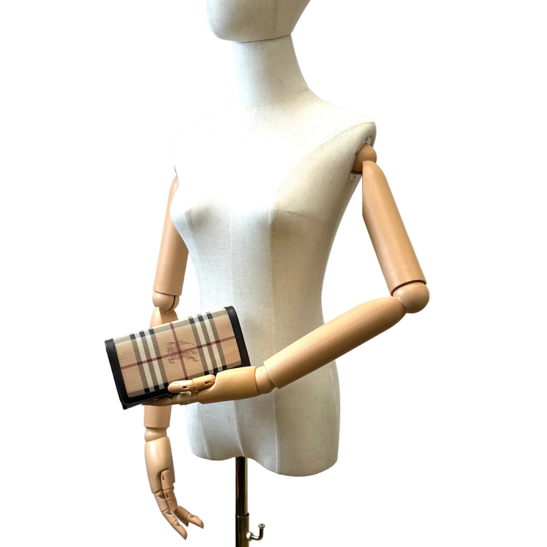 Designed for organization, the flap silhouette opens to reveal multiple card slots, bill compartments, and a secure coin pocket — all neatly arranged to keep your essentials accessible and orderly. The classic check detailing and refined finish elevate this piece, making it as stylish as it is practical.
